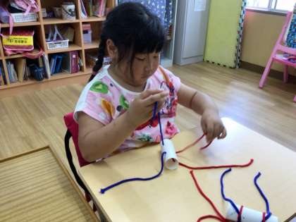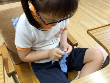 特別支援学級の1・2年生では、自立活動として指先のトレーニングを行っています。9/1の学習では、ひも通しやボタンかけに挑戦しました。あきらめず、じっくりと行っていました。
