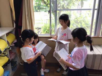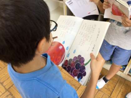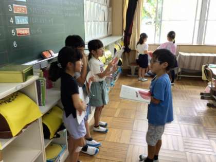 1年生の国語では、「おおきくなあれ」を学習しています。9/5の学習では、グループごとに音読練習をしました。「せ〜の」と、声を合わせて練習していました。