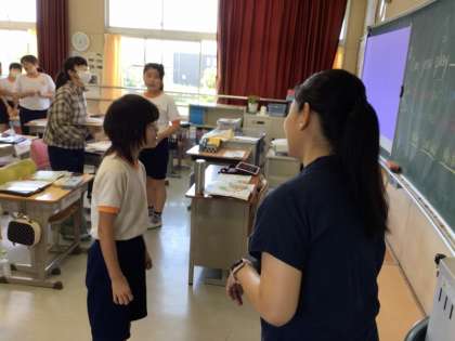 9/13の学習では、Cqn you play baseball?という問いかけに、Yes, I can. No I can't.と答え、それにつけ足して、自分のできるスポーツやできないスポーツも答える練習をしました。