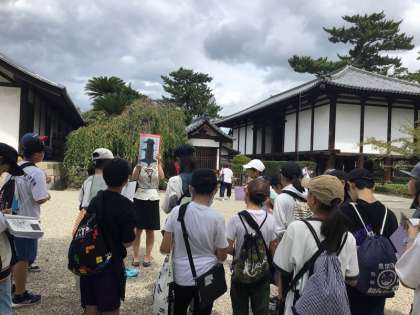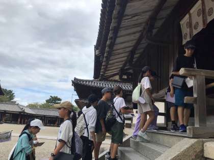 法隆寺見学の様子です。
