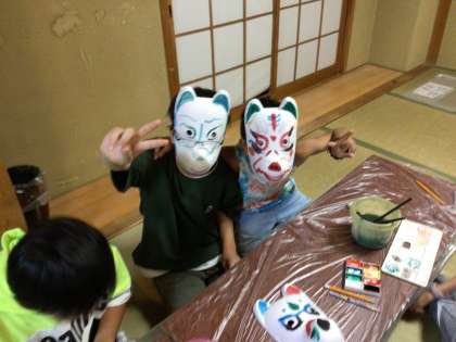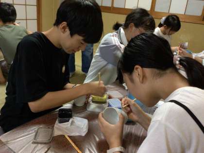 修学旅行1日目(9/14)の最後は、伝統工芸体験を行いました。児童は、「京焼・清水焼上絵付け」「念珠づくり」「狐面づくり」から1つ選び、伝統工芸体験を行いました。