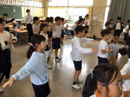 10/21(土)の「伊保っ子体育フェスタ」に向けて、フレンド班でおいでん踊りの練習をしました。9月に大谷高校ダンス部のみなさんから教わったことを生かして、5・6年生が下級生にこつを教えました。