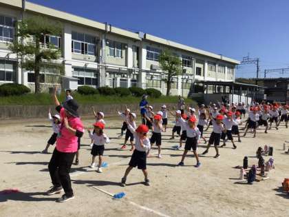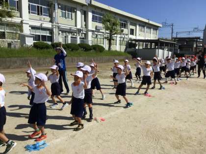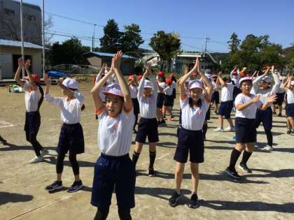 10/17(火)の全校練習で、おいでん踊りの練習をしました。全校児童がひとつの大きな輪になり、踊りました。掛け声をそろえ、全校一つになりました。