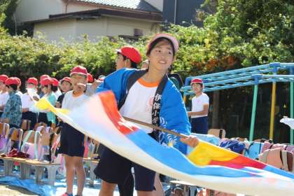 今年度から赤白対抗にしたため、競技中は絶えず熱い応援が児童席から聞こえてきました。応援実行委員が作った応援旗を振り、太鼓のリズムに合わせて手をたたき、とてもよい応援でした。