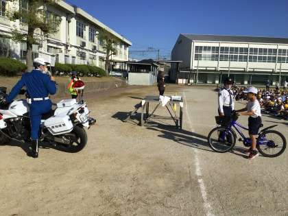 2名の警察官は、白バイとパトカーに乗って来校されたため、児童は大喜びでした。