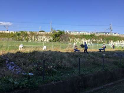 縦横無尽に伸びたつるを切り、あとは児童が掘るだけの状態になりました。野菜名人さん、いつもありがとうございます。
