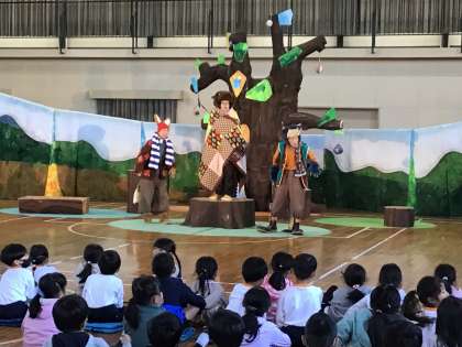 伊保小学校では、毎年PTAが主体となって劇団や芸術団体を呼び、芸術鑑賞会を行っています。11/8(水)は、劇団うりんこさんに来ていただき、「ともだちや」を鑑賞しました。