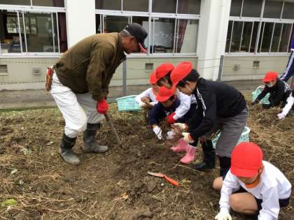 11/9(木)に1,2年生は6月に植えたサツマイモの収穫を行いました。