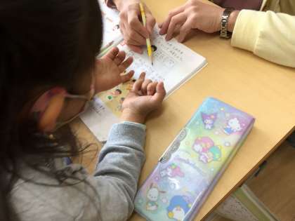 11/13の授業では、6+7の問題を、先生と一緒に考えました。6にいくつを足すと10になるかを考え、7を4と3に分けて、6+4=10 10+3=13と、答えを導き出しました。