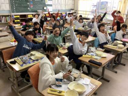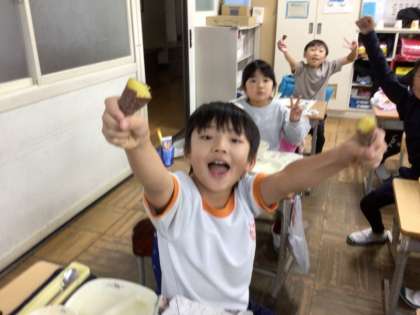 ほくほくの焼きいもを、給食時にいただきました。感想を聞いてみると、「とても甘い」「私のは蜜のような甘さだった」「ねっとりしていておいしかった」と大好評でした。野菜名人さん、東保見町の老人クラブのみなさん、ありがとうございました。
