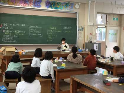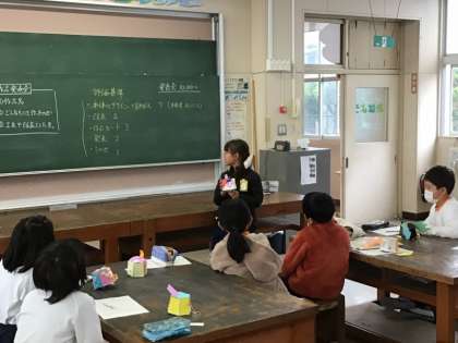 3年生の図工では「ゴムゴムパワー」という単元で、ゴムの動力で動く作品を作りました。12/12の授業では、作品発表会を行い、作品名、どんなものを作ったのか、工夫点などを発表しました。