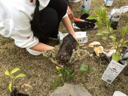 どんぐりの苗の植え替えをしたよ(6年生)