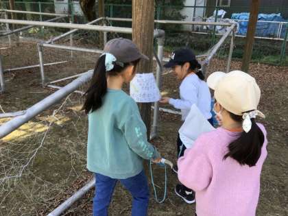 3年生は、総合的な学習の時間に、学校に生えている植物について調べ、それをクイズにしました。クイズを校庭の28か所に設置し、クイズを解きながら進む「植物いっぱいウォークラリー」を企画しました。