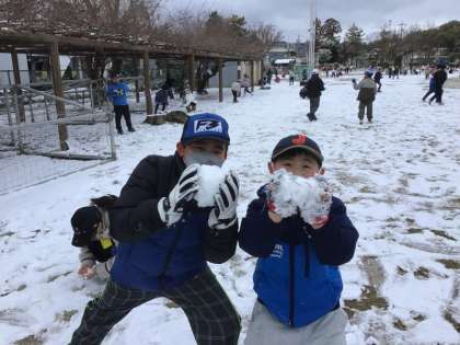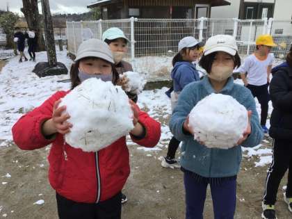 1/24(水)は冷え込み、雪が降りました。長い休み時間になると、児童は運動場に飛び出し、積もった雪で遊びました。中には、大きな雪だるまを作る子もいました。