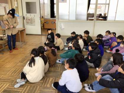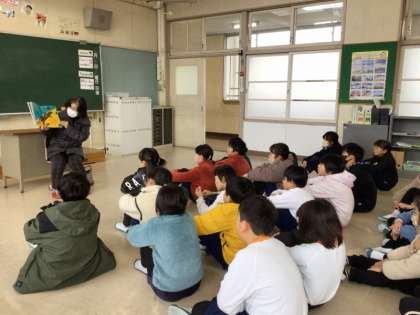 各クラスで、児童はお話の世界をたっぷりと楽しみました。読んでいただく本によってクラスの雰囲気は全然ちがい、大きな笑い声がおこるクラス、静かに絵本の世界を楽しむクラスなどまちまちでした。