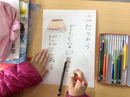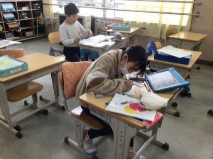 3年生の国語では、俳句の学習をしています。2/6の授業では、作った俳句を紙に丁寧に書き、俳句に合うイラストも描きました。