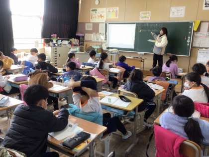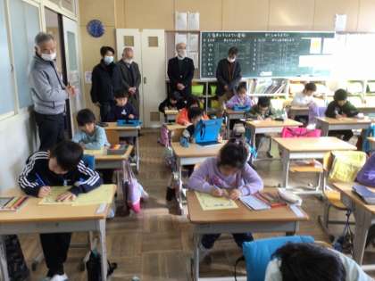会議に先立ち、全委員さんは授業参観を行いました。各学級で盛んに学習用タブレットが使われていることに驚いていらっしゃいました。どの学級も児童が積極的に学んでおり、委員さんは、ほめていらっしゃいました。