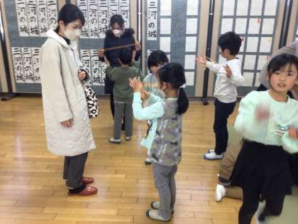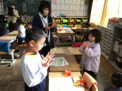 1年生は、保護者のみなさんと「むかしあそび」を楽しみました。