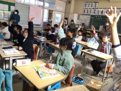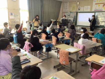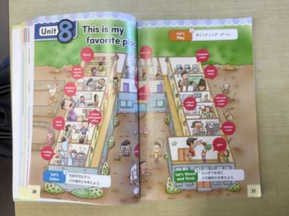 4年生の外国語では、This is my favorite place.を学習しました。クイズ形式で、お気に入りの場所を、探しました。