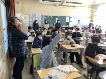 また外国語では、What season do you like?を学習しました。代表児童が、会話を発表しました。
