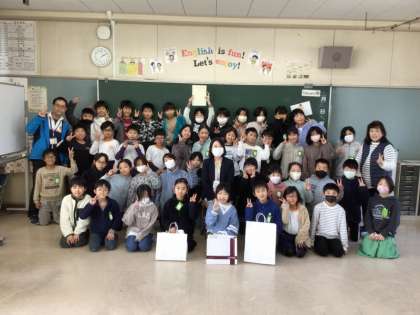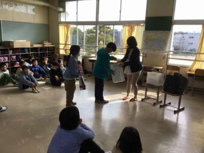 えんぴつプロジェクトで集めた文房具を、お渡ししたよ(4年生)