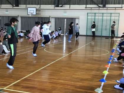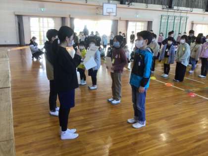 給食委員は、「食事のマナー週間」で優秀なクラスを表彰しました。生活委員会では、下校時に静かに並ぶよう、呼びかけました。体育委員会は、今年度体育委員会が「体力向上」のための活動によって、全校児童の体力が向上した結果を発表し、さらにリズム縄跳びを披露しました。