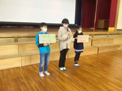 2/14に全校集会を行いました。校長先生のお話や表彰があり、その後、各委員会からの連絡、表彰、発表がありました。