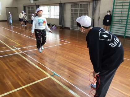 2/22は、2年生の「一緒に縄跳びをして、教えてほしい」という願いをかなえました。「二重跳びを跳べるようになりたい」という2年生の思いに応えようと、跳び方のこつを教えていました。