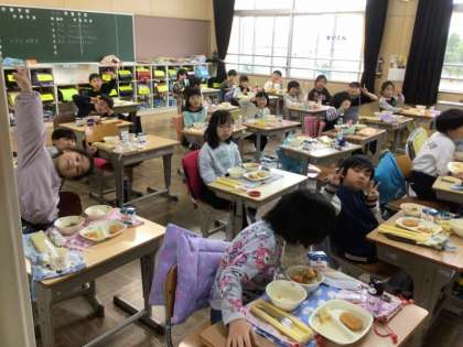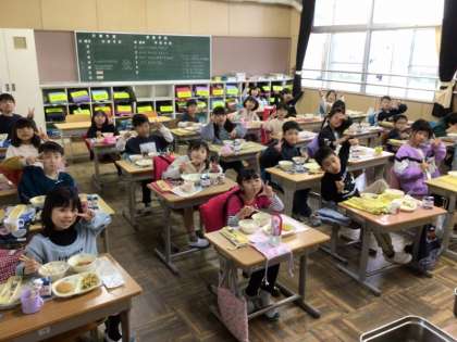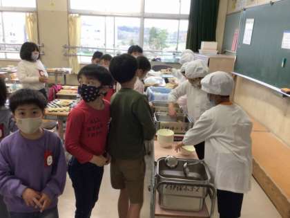 4/5金から、2〜6年生は給食が始まりました。新しいクラスですが、どのクラスでも手際よく準備をしていました。「給食おいしい〜」と、素敵な笑顔が見られました。