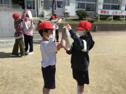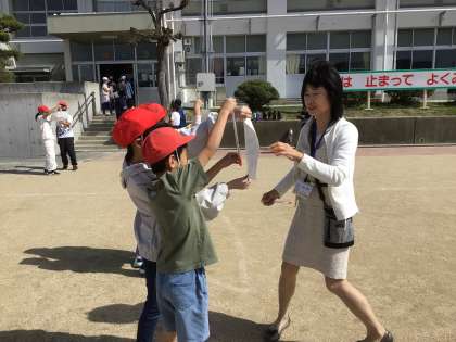 4/19の学習では、ペアで気温を計りました。一人は温度計を目の高さで持ち、もう一人は温度計が日陰になるように、紙で直射日光を遮りました。1日何回か計って、気温の変化を調べました。
