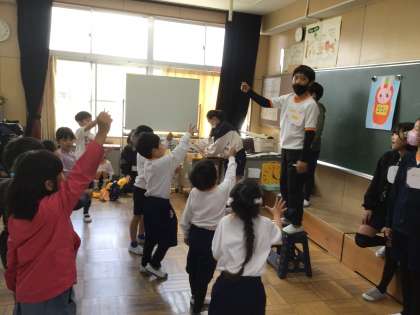 各フレンド班でのゲームは、フルーツバスケット、ハンカチ落とし、〇×ゲーム、伊保小学校クイズなどがありました。全校児童は、6年生の考えたゲームで、楽しむことができました。