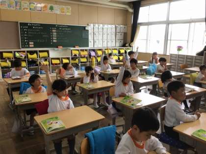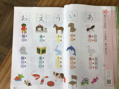 1年生の国語では、「あいうえおのうた」を学習しています。4/22の学習では、まず、口をはっきりと開けて、読む練習をしました。続いて、「あ」ではじまることば、「い」ではじまることばなど、言葉集めをしました。
