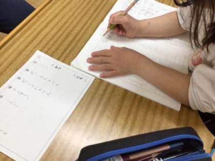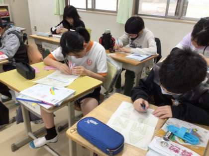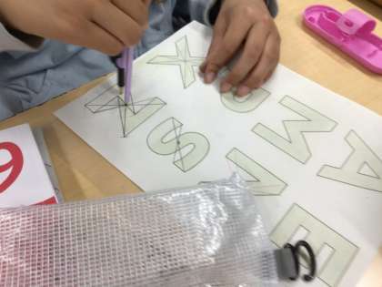 6年生の算数では、「線対称と点対称」を学習しています。4/22の学習では、点対称になるアルファベットの対象となる点をそれぞれ結んで、対称の中心を見つけました。