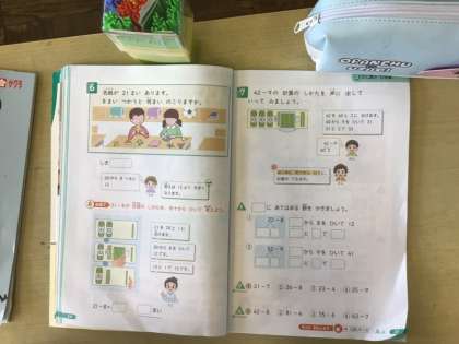 2年生の算数では、「たしざんとひきざん」という単元を学習しています。4/25の授業では、数え棒を使って、42-9の計算の仕方を考えていました。