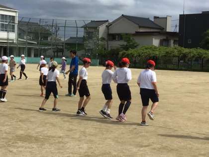 伊保小学校の体育では、どの学年も5月に行るスポーツテストに向けて、運動の基本となる動きを学んでいます。