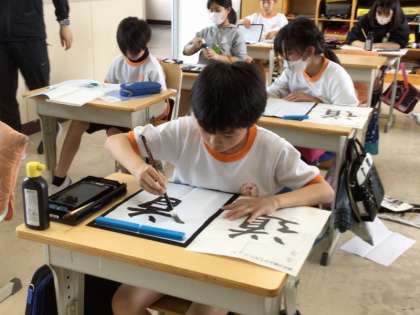 5年生の書写では、「道」を練習しました。特に、しんにょうの形の取り方に気を付けて、練習をしていました。