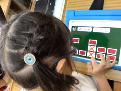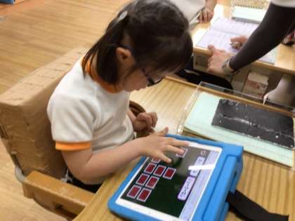 特別支援学級2年生は、学習用タブレットを使ってカード合わせをして学びました。同じ仲間の組み合わせを探して、答えていきました。