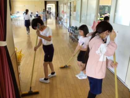 今年度は、毎週水・木曜日にフレンド班掃除を行います。5/8は、今年度最初のフレンド班掃除を行いました。児童は、フレンド班の教室に集合し、役割分担をした後、各清掃場所で初めてのフレンド班清掃を行いました。上級生が下級生に、ていねいに清掃の仕方を教えていました。