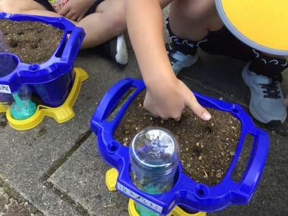 1年生の生活科では、アサガオを育てて観察をします。5/13(月)に、1年生はアサガオの種をまきました。