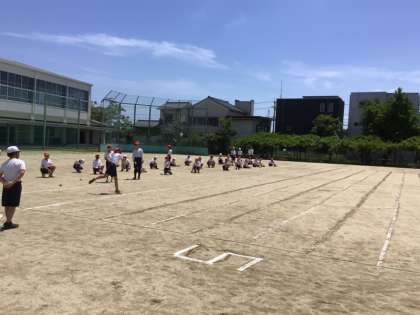 5/17、5年生は、体力テストの種目の一つである「ソフトボール投げ」を行いました。投げる角度に気を付けて何回か練習をして、計測を行いました。30m以上飛ばす子もいて、みんな驚いていました。