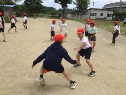タグや布をズボンにはさんで、それを取り合うゲームもありました。取るほうも逃げるほうも必死です。