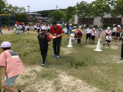 ボールを運ぶゲームもありました。ALTの先生も仲間に入って、大盛り上がりでした。