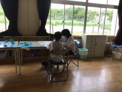 伊保小学校では、年間3回(6月、10月、1月)教育相談週間を設けて、担任が児童と一対一で話ができる時間を作っています。教育相談に入る前に、「教育相談アンケート」と「いじめアンケート」を行い、担任はアンケートに目を通して相談活動を行います。これは、いじめなどの問題の早期発見や早期解決のためです。