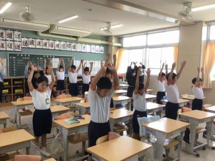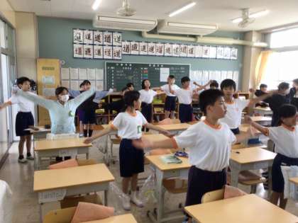 5年生は、6/14金〜6/15土に自然教室(キャンプ)に出かけます。現在、準備の最終段階に来ています。自然教室を行う施設では、朝の集いの中で「ラジオ体操」を行います。学校での朝の会の中で、ラジオ体操も練習しています。
