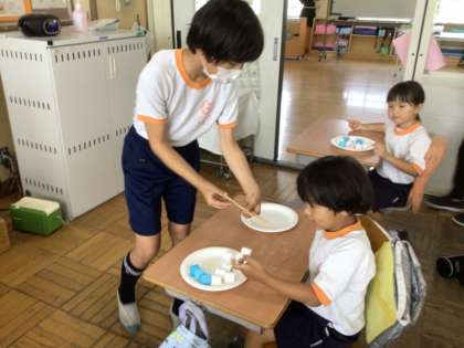 6/11は、各班でいぼリンピックの準備会がありました。まず、6年生からゲームの説明を受け、その後、6年生からゲームの役割の発表がありました。「案内係」「ゲームの道具をもとに戻す係」など、全員が係をもらい、とてもうれしそうな顔をしていました。