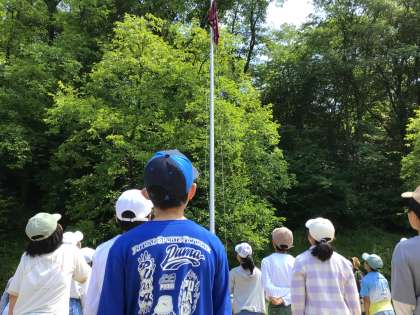 入所式。担当の人たちの生き生きとした司会でキャンプがスタートしました。