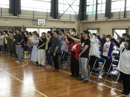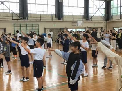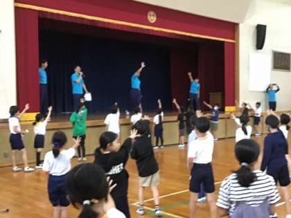児童保健委員会の発表の後、スポーツ委員さんからコーディネーショントレーニングを教わりました。