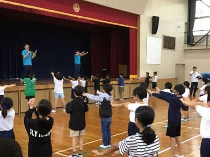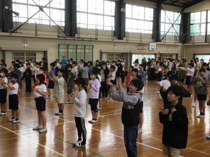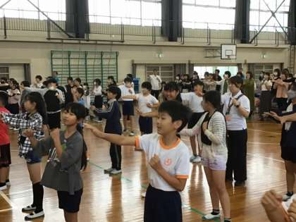 続いて、片手を前に伸ばし、もう一方を胸の前で曲げ、交互にグーパーを繰り返す運動を行いました。何回もやると、混乱してしまいました。