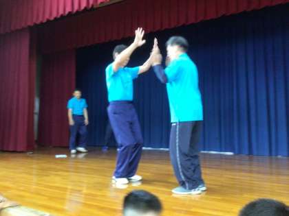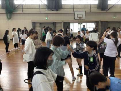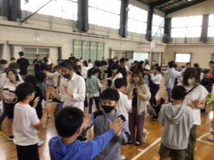 続いて、親子ペアまたは友人ペアで押し相撲や、足踏みを行いました。