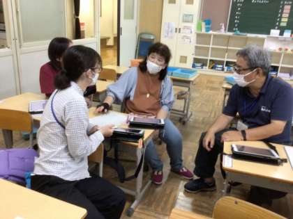 6/20の授業後、教職員で、学習用タブレットにインストールされている、キュビナの研修会を行いました。